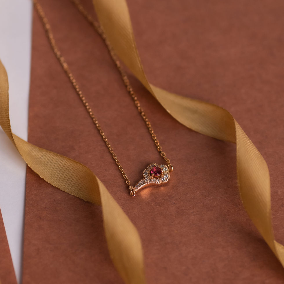 Studded Peacock Feather Red Stone Pendant Chain